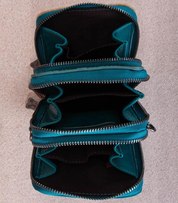 Genuine Hair-On Cowhide /Tooled Collection Phone Purse with Coin Pouch